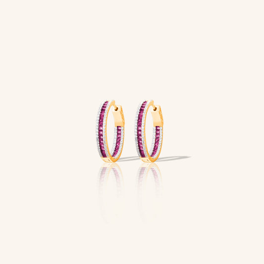 Ruby Baguette Diamond Hoops