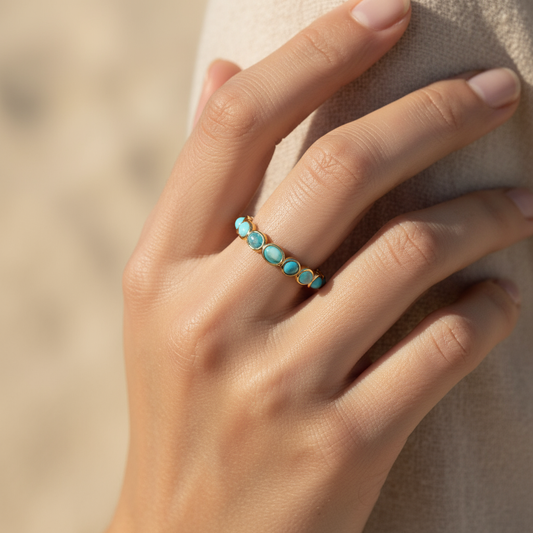 Ocean Gradient Gemstone Eternity Ring – Golden Waves of Serenity